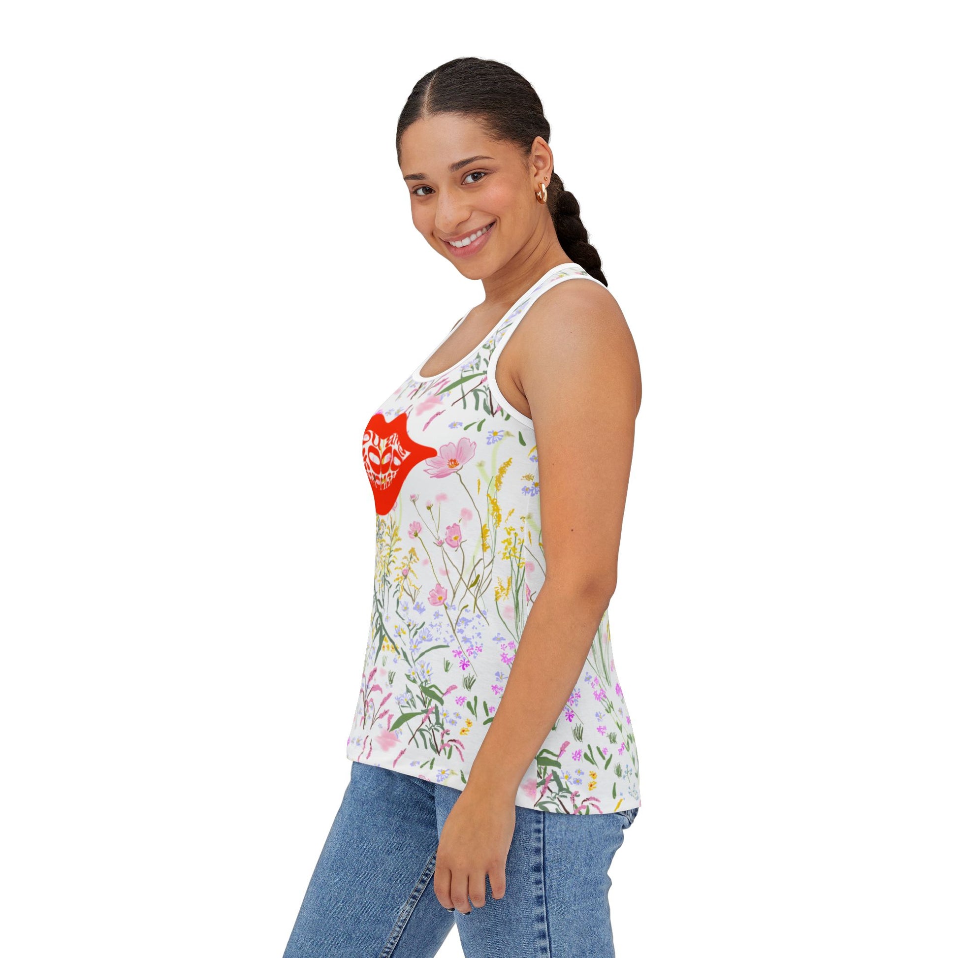 Floral Kiss Women's Tank Top - Chic Summer Wear, Casual Outfit, Gift for Her, Vacation Top, Workout Apparel
