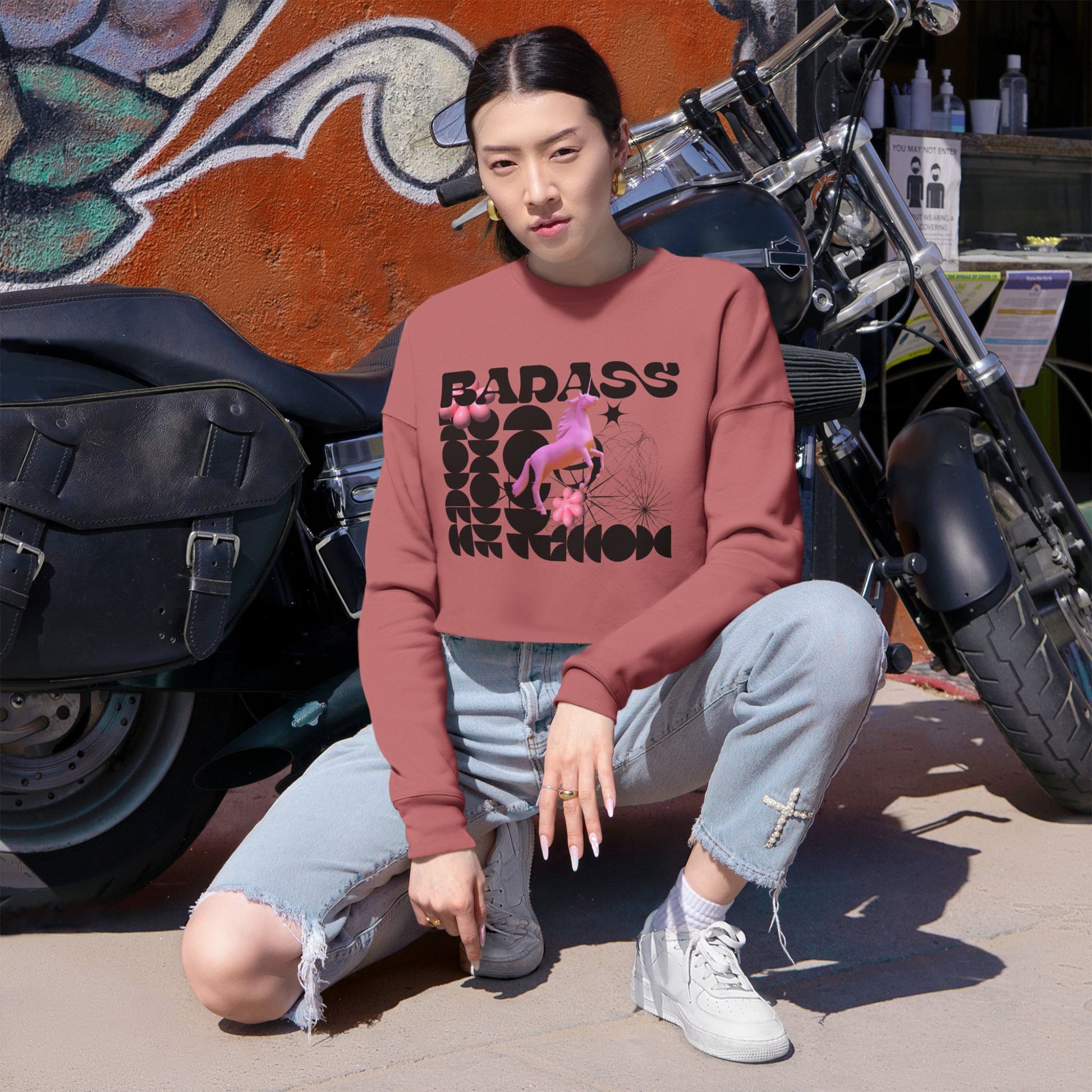 Introducing a stylish Women’s Cropped Sweatshirt that combines comfort with an edgy flair. This sweatshirt is perfect for those laid-back days, offering a relaxed fit that allows for easy movement. The soft fabric feels luxurious against the skin, making it an ideal choice for casual outings or cozy indoor wear. It’s a versatile piece that effortlessly complements your favorite jeans or leggings, making it a staple in any wardrobe. This sweatshirt is great for fashion-forward women who appreciate unique designs, and it serves as a fantastic gift for birthdays, holidays, or just because! Perfect for celebrating self-expression and individuality, this sweatshirt embodies a casual yet bold vibe.