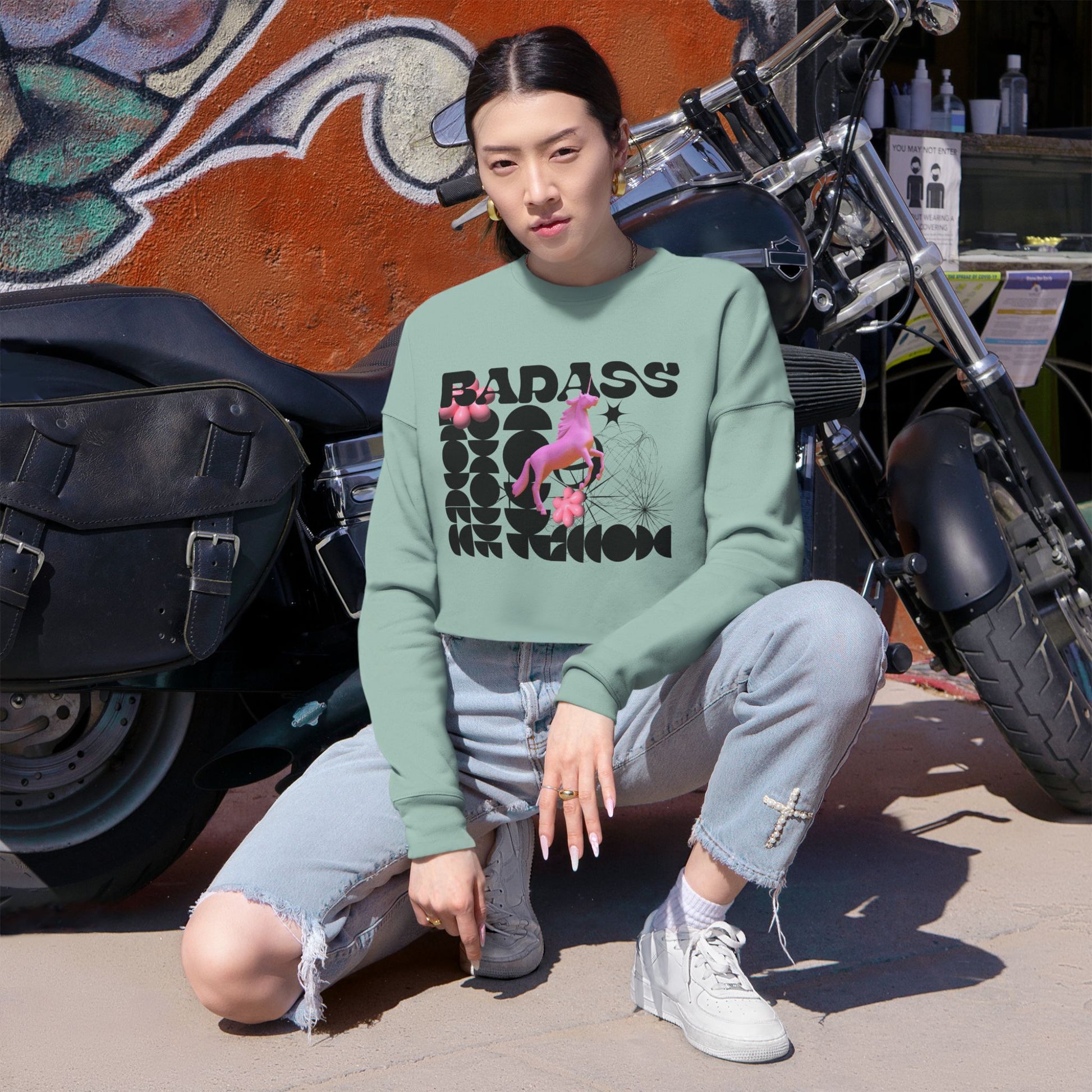 Trendy Women's Cropped Sweatshirt, Art Sweatshirt, Casual Crop Top, Birthday Gift, Statement Fashion